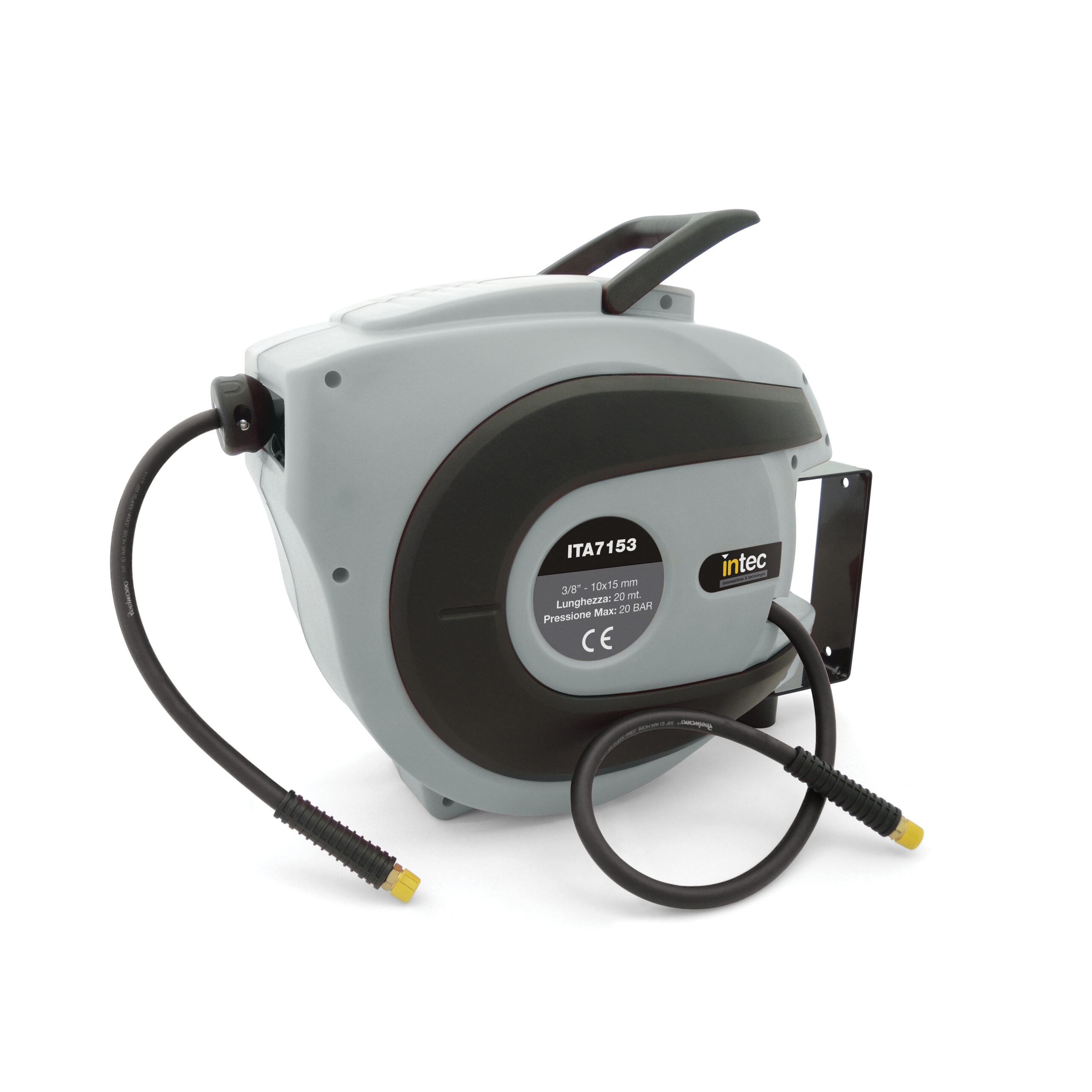ITA7153 è un arrotolatore per utilizzi gravosi e con utensili che richiedano una generosa portata d’aria. Robusta struttura in materiale plastico antiurto con staffa girevole per applicazione a parete o a muro, guida a rulli per il ritorno del tubo e dispositivo di rientro a velocità costante.