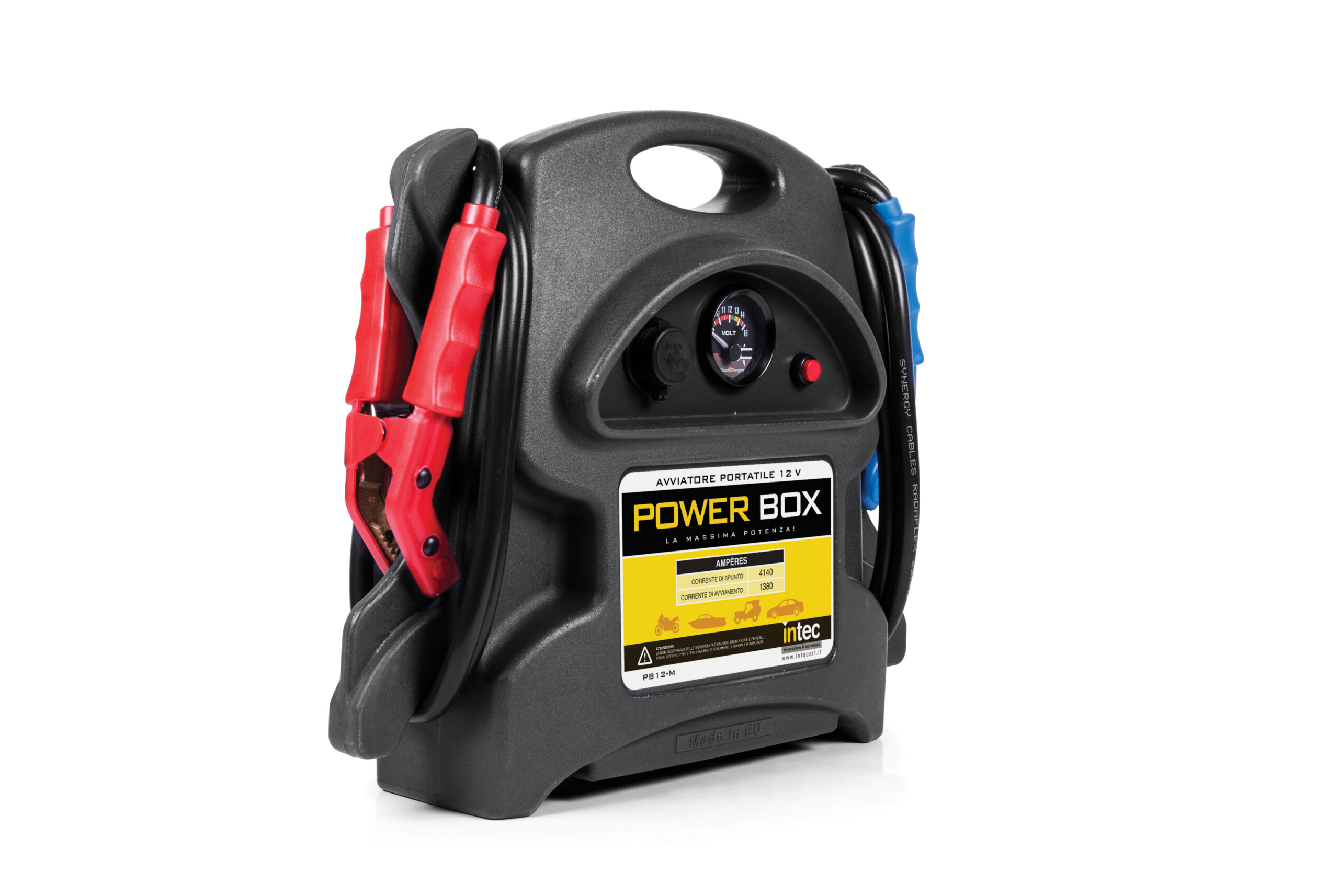 Il modello PB12-M eroga 1380CA ed è adatto all’uso medio-pesante dell’elettrauto, del carrozziere e della flotta di soccorso, su vetture e furgoni fino a 2500cc.
