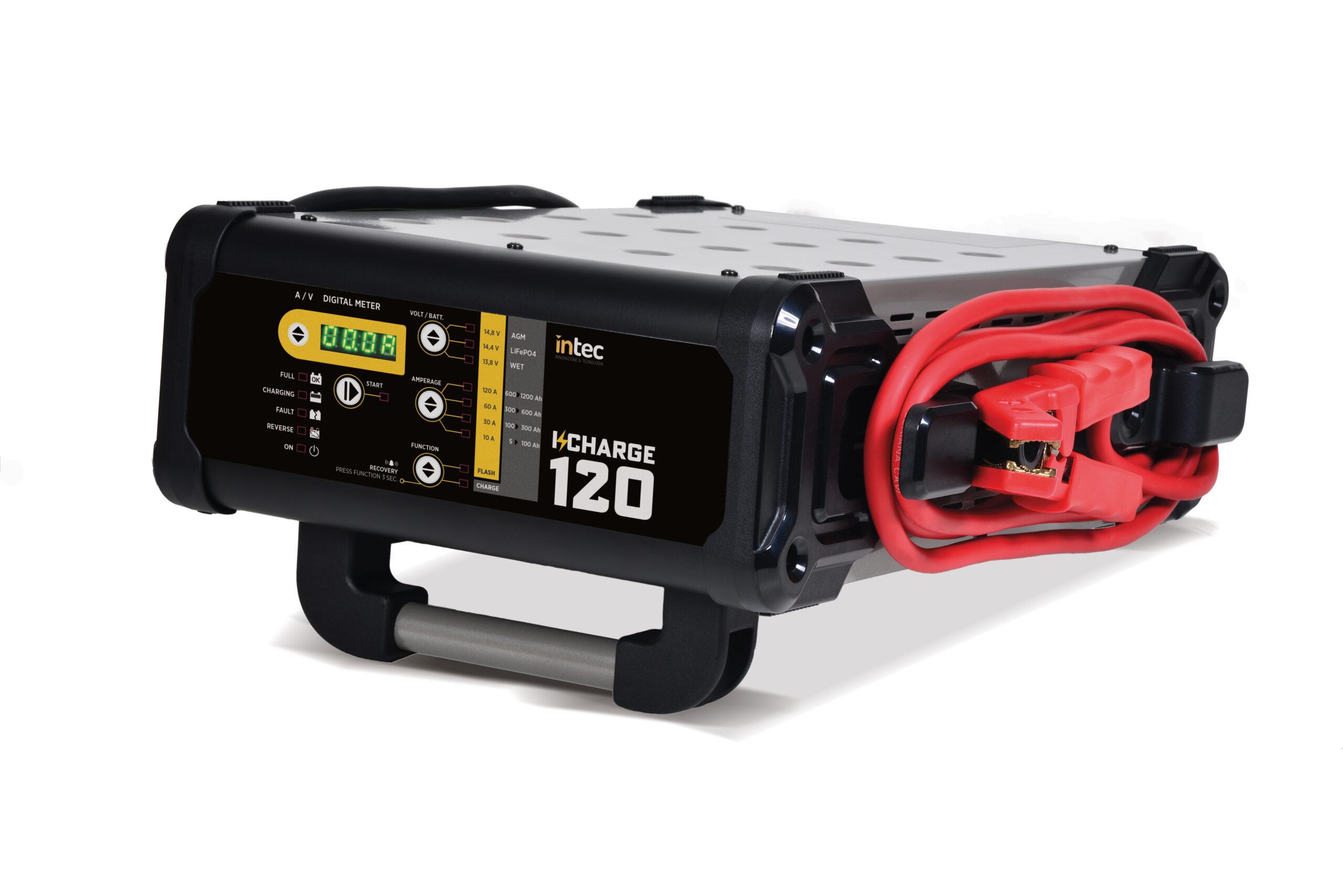 Il caricabatteria ed alimentatore I-CHARGE 120 fornisce un’alimentazione pulita ed affidabile fino a 120Amps per la ricarica ed il mantenimento dello stato di carica della batteria durante le operazioni di riprogrammazione e di manutenzione complessa, nonché nell’autosalone.