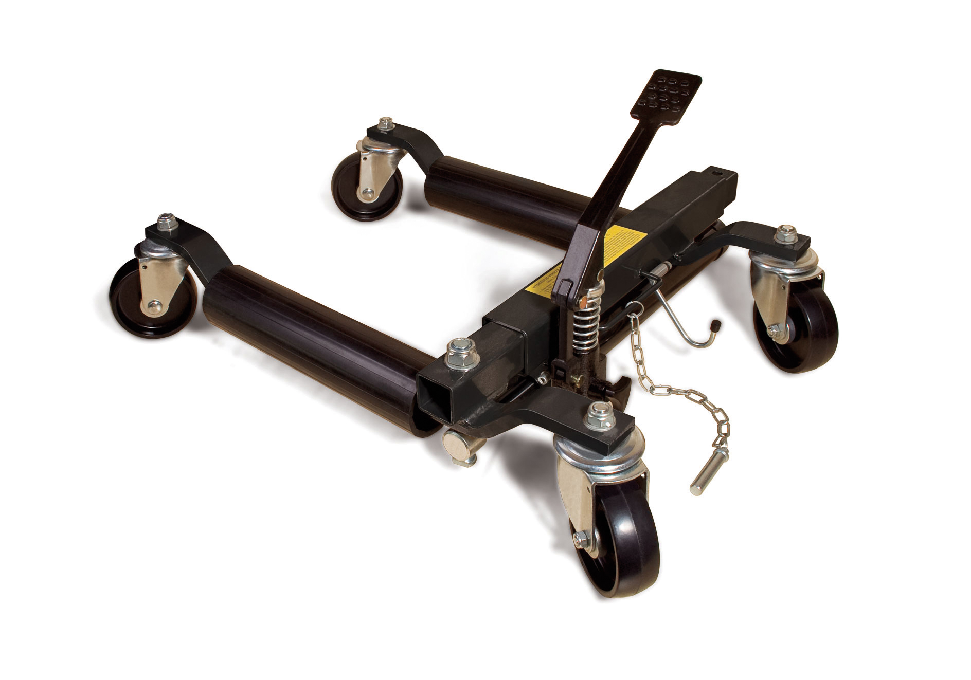 Grazie alla sua pompa idraulica a pedale, usato in coppia o in doppia coppia, può sollevare una vettura dalle ruote per permetterne il posizionamento o lo spostamento. Portata del singolo sollevatore 680 Kg. Per ruote a partire da 12”.