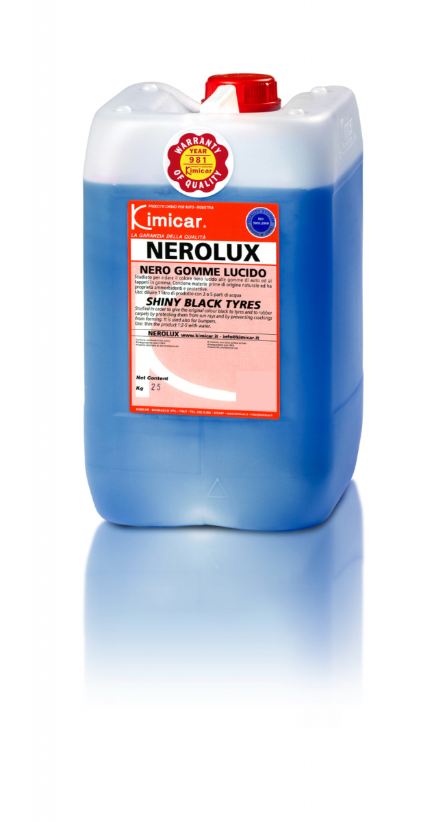 Nerolux contiene materie prime di origine naturale con proprietà ammorbidenti. Ha potere adesivo sulla gomma, evitando così, durante la marcia, gli schizzi di prodotto sulla vernice dell’auto. Disponibile anche la versione “Trasparente”.
