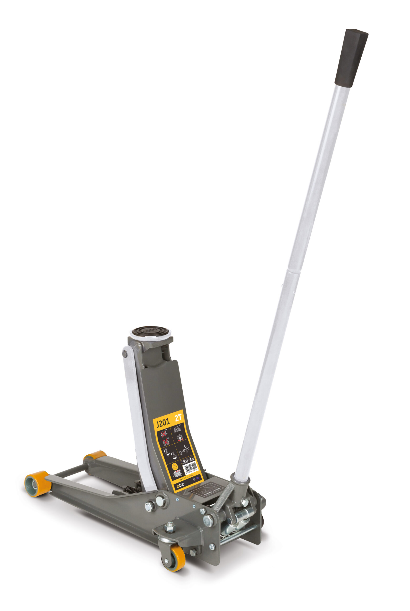 Carrello da 2Tonnallate ribassato, il J201 è dotato di un nuovo sistema con doppio pistone per un rapido avvicinamento al sottoscocca. Ruote in PU, piattello in gomma, nuova impugnatura in gomma.
