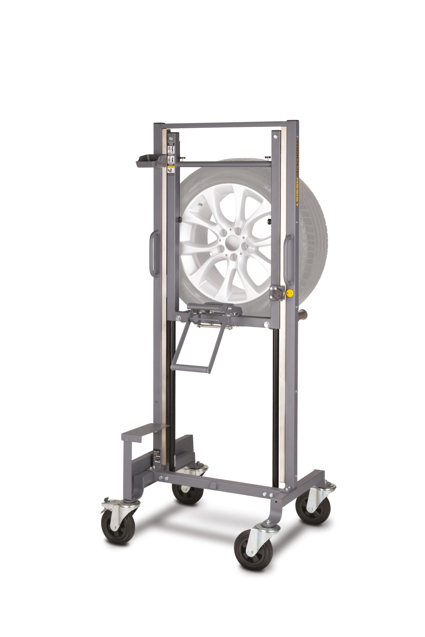 Grazie alle sue potenti molle a gas ed al suo design brevettato, Wheel Assist ERGO PLUS è in grado di sollevare e posizionare rapidamente con grande precisione la ruota in fase di montaggio e smontaggio. Robusto ed affidabile, ma al tempo stesso leggero e compatto, permette al singolo operatore di lavorare su ruote fino a 60 kg senza rischio per la propria schiena. Alzata massima 980 mm.